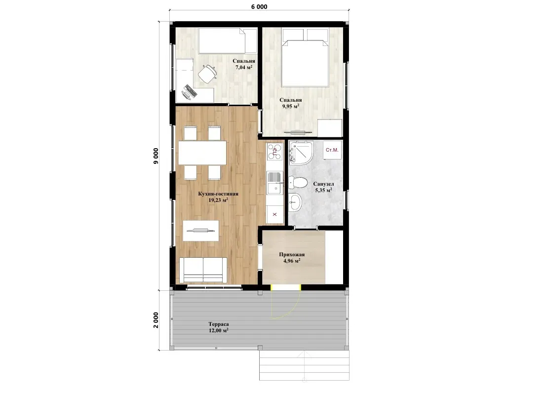 Каркасный домПроект каркасного дома «Честер 6х11» — небольшой двухэтажный дом площадью 65 м², построенный по каркасной технологии. Планировка: 2 спальни, 1 санузел, два этажа. Срок строительства — 2 месяца. Преимущества проекта: продуманная планировка. Строим в Москве и Московской области с гарантией качества.