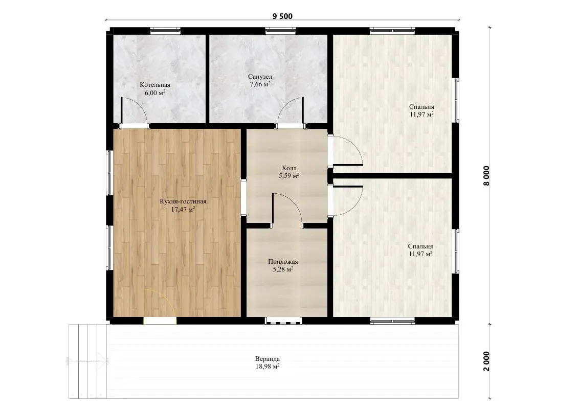 Внутренние несущие стены: 100 мм