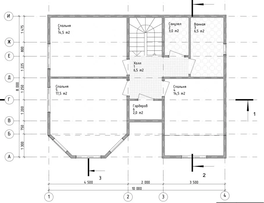 Внутренние несущие стены: 100 мм