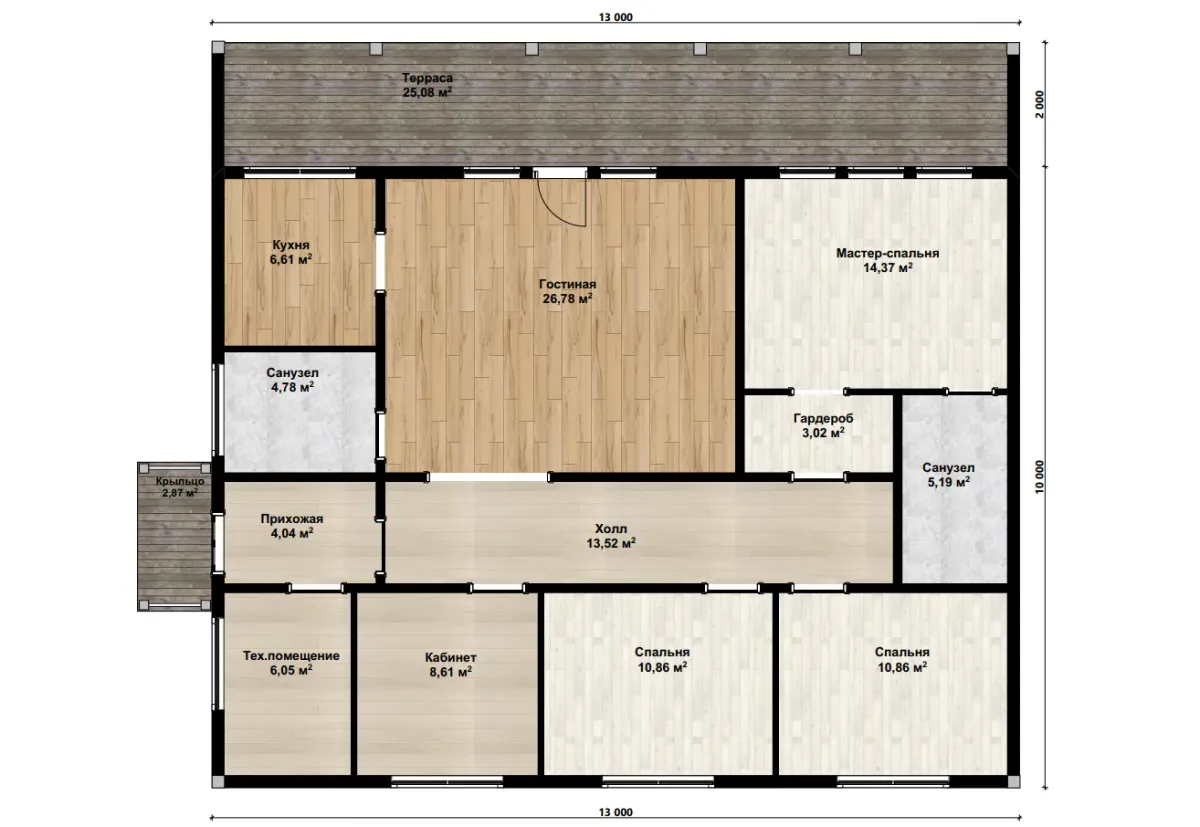 Внутренние перегородки: 100 мм